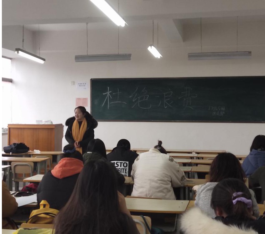 为积极响应学校厉行节俭,反对浪费,坚决制止餐饮浪费行为的号召,12月8日,17级5班在行政楼423教室召开了“杜绝浪费 从我做起”的主题班会。班会由班主任张忠慧老师主持。