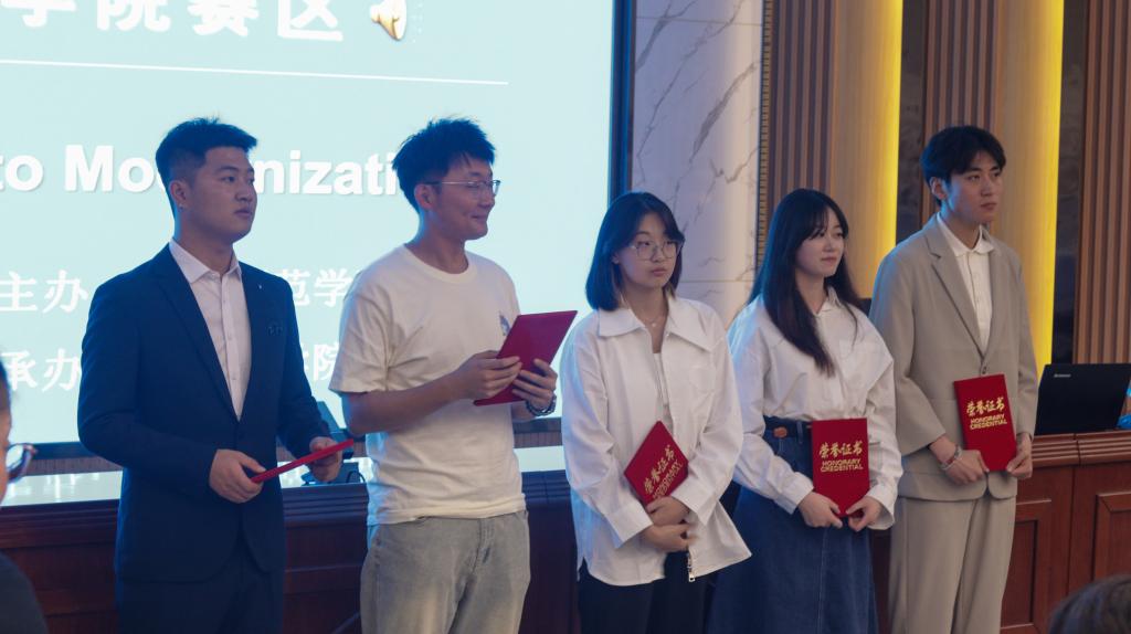 演讲比赛决赛在以“理解当代中国”为话题,以“中国式现代化道路”为主题,分为定题演讲、回答问题、即兴演讲三个环节。在定题演讲环节,参赛选手围绕主题从各个方面讲述了中国式现代化道路上的鲜活故事,充分展现了积极向上、奋斗激扬的师院青年力量;在回答问题和即兴演讲环节,选手们反应敏捷、应答机智、论证合理,用风趣幽默的语言感染了评委和现场观众。经过激烈角逐,Beat365唯一官方网站英语专业2020级1班王珂、化学工程与技术学院应用化学专业2021级1班张轩分获比赛特等奖和一等奖。
