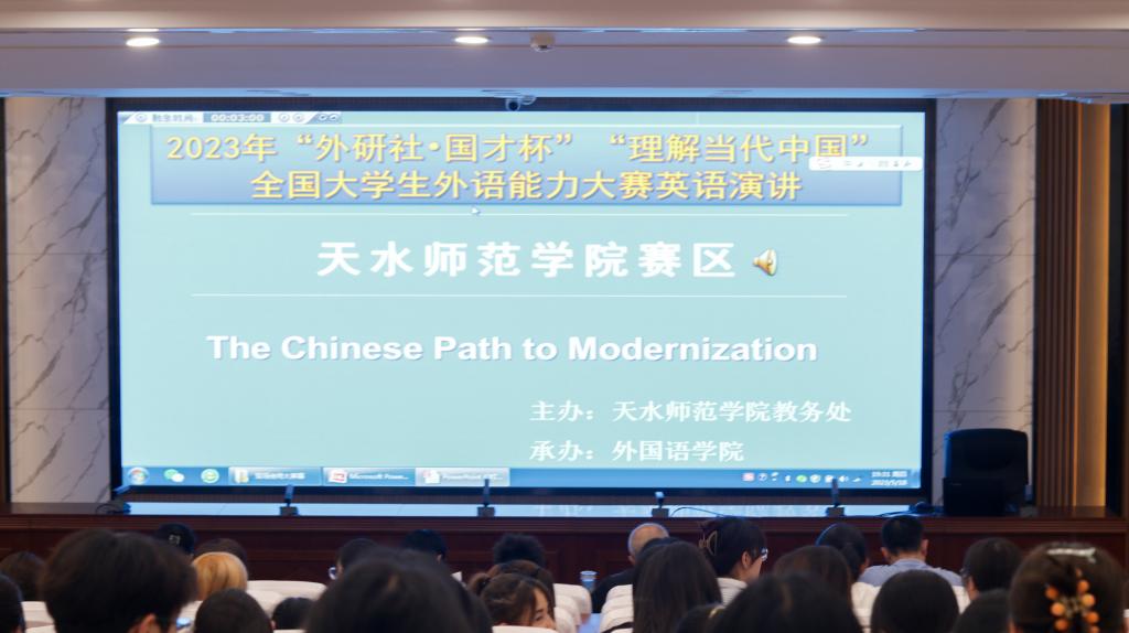 日前,2023年“外研社·国才杯”“理解当代中国”全国大学生外语能力大赛天水师范学院赛区决赛在Beat365官网举行,大赛包括演讲、阅读、写作比赛,由教务处主办,Beat365唯一官方网站承办,Beat365唯一官方网站专业教师担任大赛评委。