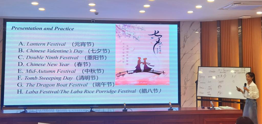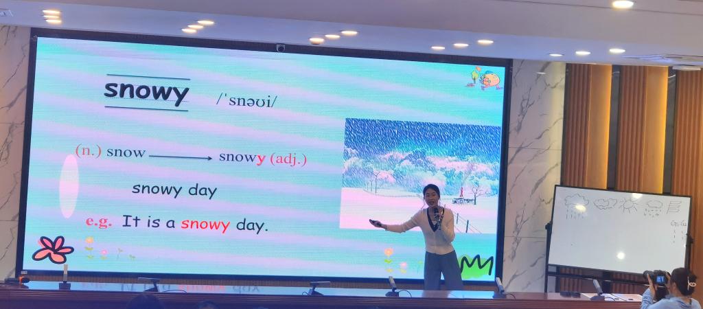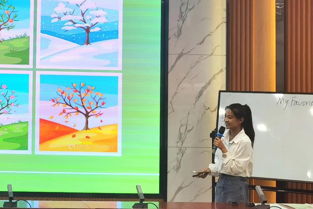 大赛分为即兴演讲、课堂教学展示、课后教学反思三个环节。余文静同学在授课环节将歌曲、古诗词和传统节日巧妙地融合到单词和课文讲解当中,课堂气氛活跃。王蓉同学在模拟上课环节采用歌曲导入复习单词,运用简笔画对新单词进行了详细讲解和扩展,口语流利,自信大方。马君茹同学以一首英文歌曲的演唱开始了自己的授课环节,亲和力强,游戏环节生动有趣。三位选手精神饱满、教态自然、声音洪亮、对教学内容熟练,展示了Beat365官网师范生的教学风采,受到一致好评。