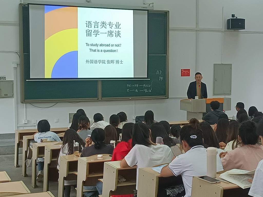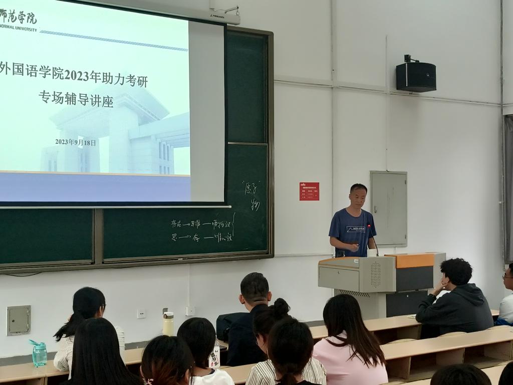 张玉堂老师以自己丰富的考研经历开始,给大家阐述了须以兴趣为导向确定院校和专业,强调了个人努力和不懈坚持的重要性,同时也给同学们介绍了复试面试的一些注意事项等;张晖老师以《语言学专业留学一席谈》为题,结合自己出国留学的经历和经验,介绍了出国留学的优势和弊端、英语留学方向、出国留学可选国家等,希望同学们能走出舒适圈、突破自己、开阔视野,丰富人生;安登贤老师分享了MTI专业介绍、考试科目、招生院校和上岸经验四个方面的内容,通过具体数据和典型案例对MTI考研全过程进行了详细讲解,帮助同学们拓宽了思路;邵晓霞老师重点讲解了教学论方向考研的学校选择、考试内容、复习和答题过程中的注意事项等内容,为同学们提供了几所可参考的院校,希望大家打好专业基础,孜孜不倦,砥砺深耕。