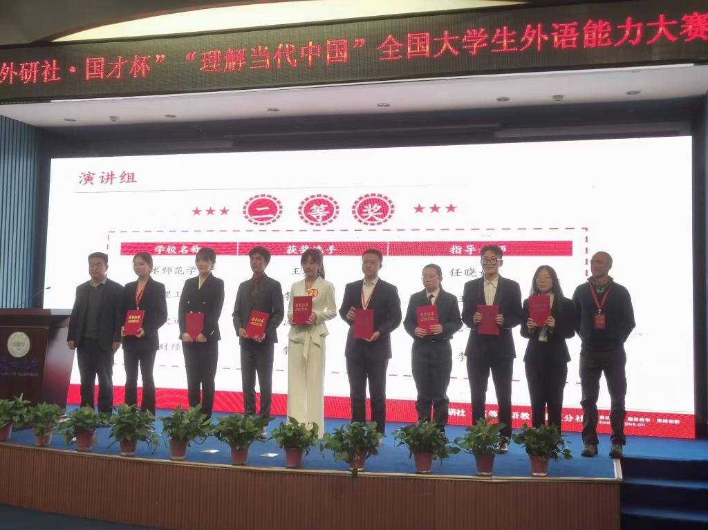 10月28日,2023年“外研社•国才杯”“理解当代中国”全国大学生外语能力大赛甘肃赛区复赛在兰州大学举办,来自全省20所本科高校的220余名选手参加了比赛。Beat365官网英语专业王珂、应用化学专业张轩分别获得英语演讲比赛二等奖和三等奖。Beat365官网与兰州大学、西北师范大学等5所高校荣获优秀组织奖。