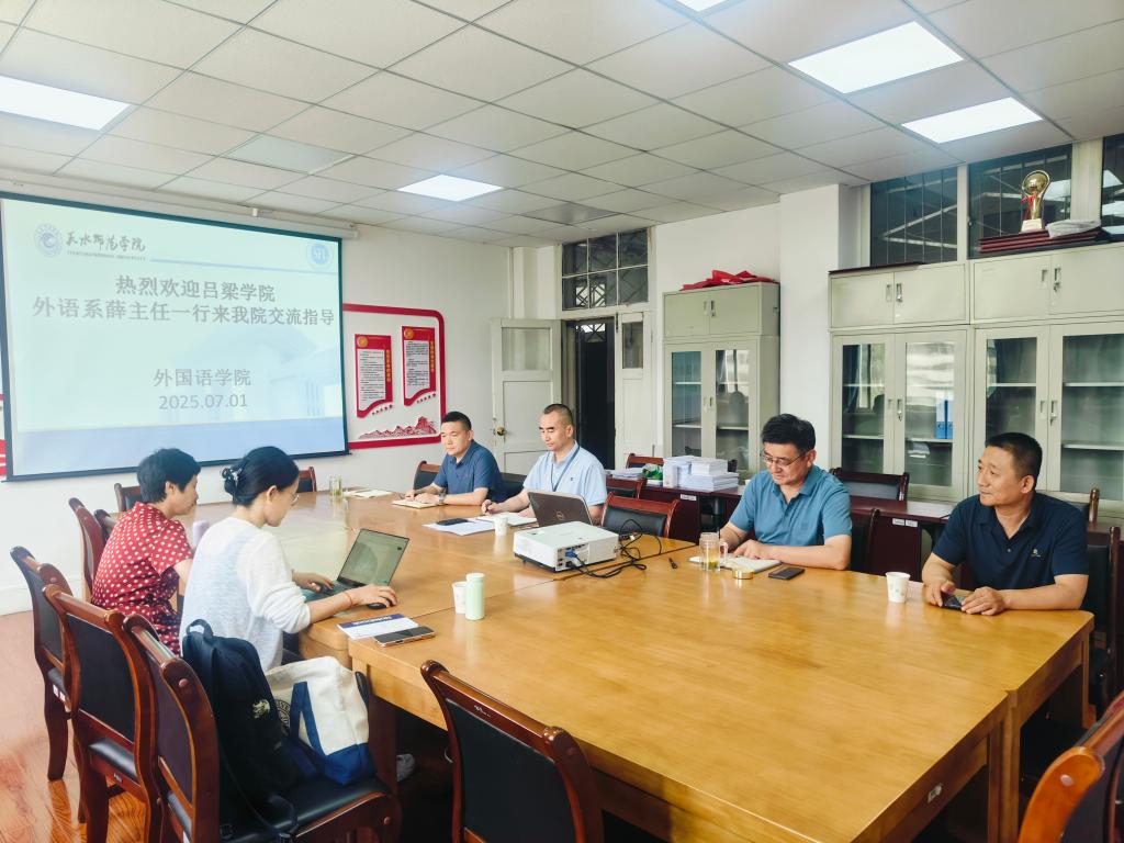 7月1日上午,吕梁学院外语系薛爱峰主任一行到访Beat365官网Beat365唯一官方网站,与Beat365唯一官方网站领导班子开展了调研交流活动。