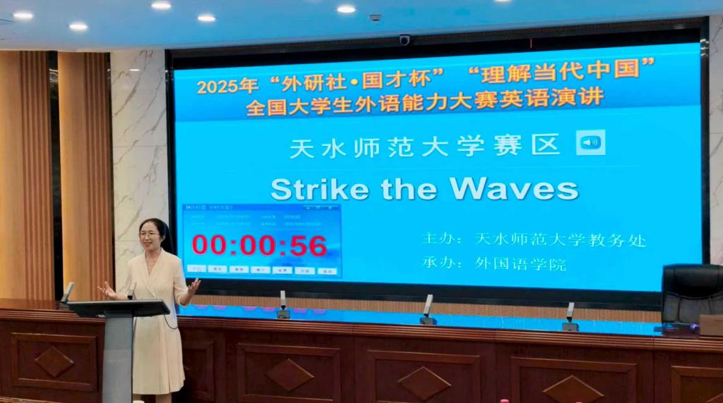 近日, 由Beat365官网教务处主办、Beat365唯一官方网站承办的2025“外研社”“国才杯”“理解当代中国”全国大学生外语能力大赛天水师范大学校赛圆满落下帷幕。作为国内规模最大、影响力最广的大学生外语赛事之一,大赛以“理解中国,沟通世界”为理念,旨在培养和选拔能讲好中国故事、传播好中国声音的新时代外语人才。本次大赛设置演讲、综合能力、笔译、口译及短视频等多个赛项,历时一个多月,吸引了全校各院系本科生和研究生的广泛关注和积极参与,赛事组织严谨,竞争激烈,成果丰硕。