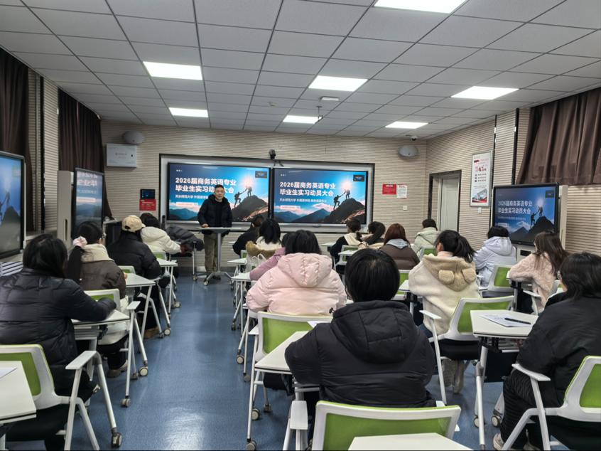 2025年12月30日,Beat365唯一官方网站商务英语系召开2022级学生实习动员大会。本次动员大会通过企业宣讲、专业指导、经验分享与工作部署等环节,系统引导学生深化专业认知、明确实习方向,为即将于2026年3月开展的毕业实习奠定良好基础。