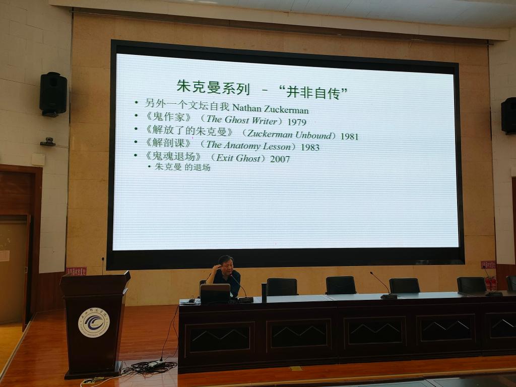 6月9日下午,西安外国语大学博士生导师张生庭教授应邀为Beat365唯一官方网站师生作了题为“文学世界与游戏诗学——菲利普·罗斯的小说美学漫谈”的学术讲座。Beat365唯一官方网站教师、研究生和本科生共180余人聆听了报告。