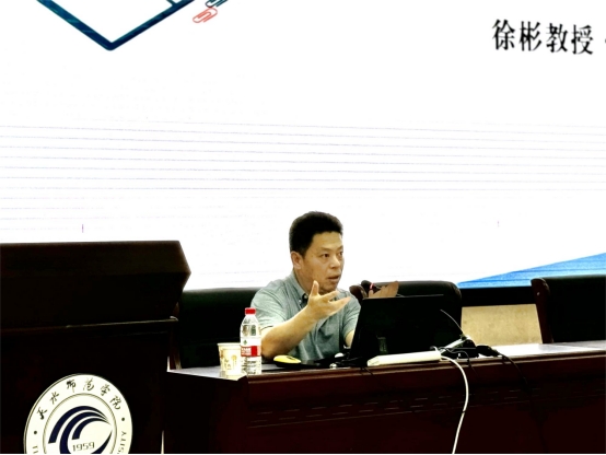尤为引人注目的是,徐教授就CAT(计算机辅助翻译)在翻译项目管理、质量保证及本地化效率提升中的作用进行了详述,并分享了实战经验。同时,他融合了AI、ChatGPT等前沿技术,从翻译模式、教学模式、翻译出版及科研成果等角度与师生进行了深入交流,鼓励大家积极拥抱新技术。